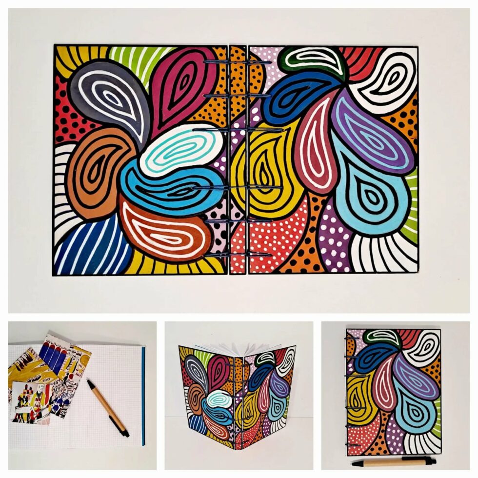 Avec Mes p’tits carnets personnalisés j’ai aussi l’envie de donner à mes futurs clientes/clients une création unique qui résulte de plusieurs heures passées à imaginer, dessiner, peindre un motif original et ouvert sur l’imaginaire particulier de chacun.