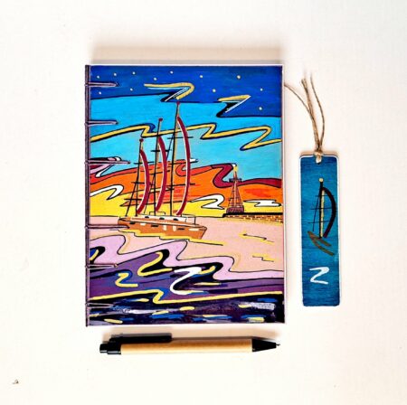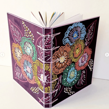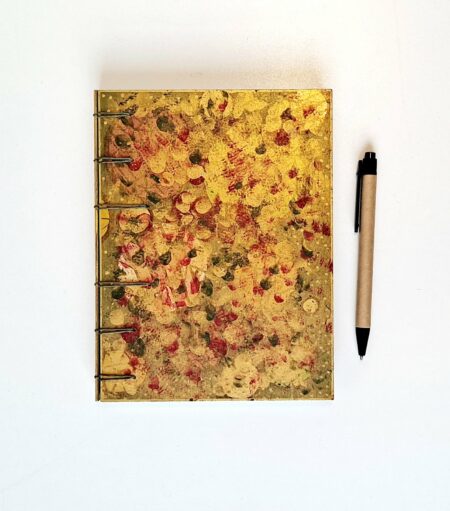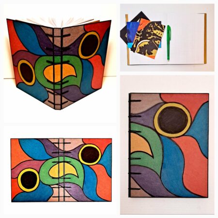 Je n’utilise pas de colle : la reliure est cousue à la main, dans l’esprit de mes carnets artisanaux. Ainsi, ce choix permet un mouvement fluide et silencieux, tout en assurant solidité et durabilité.